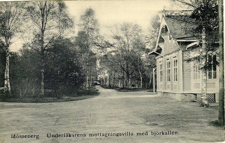 Underläkarens mottagningsvilla med björkallén.