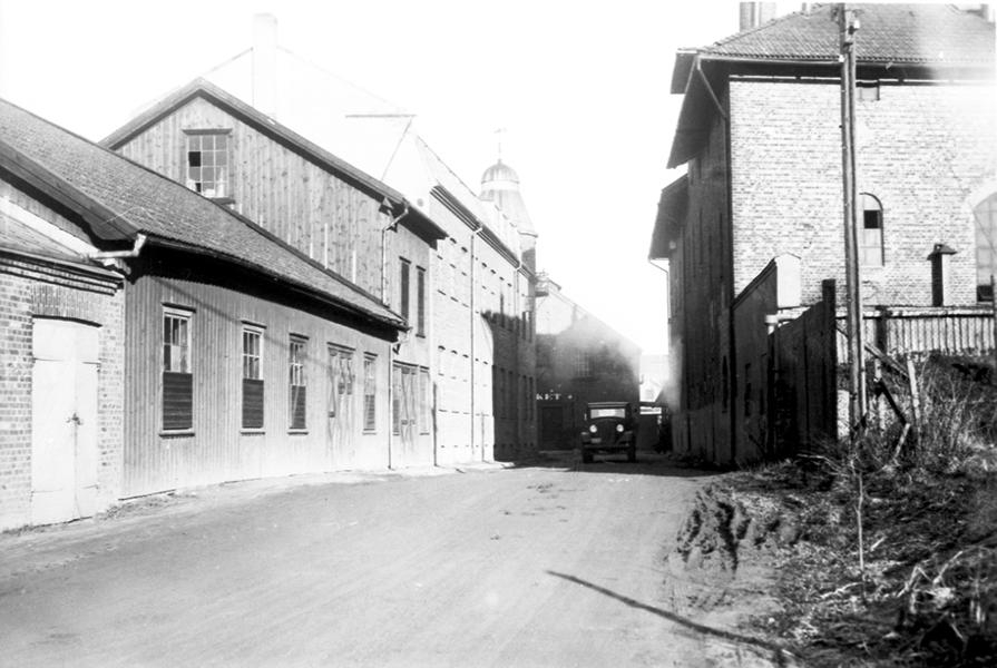 Efter att från Gamla Göteborgsvägen ha passerat över flera järnvägsspår och omedelbart därpå tvära kurvor går vägen via Storgatan in mot staden.