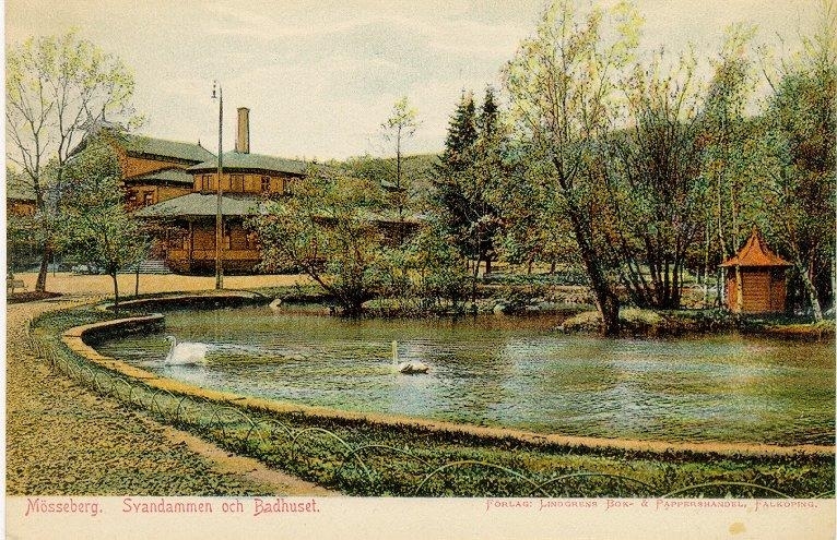 Svandammen och badhuset (färglagd bild).