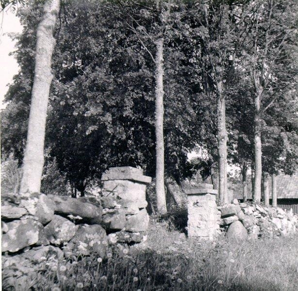 Varvs gamla kyrkogård. Ingångsporten mitt för gamla prästgården. Prosten Mellins grav i bakgrunden.