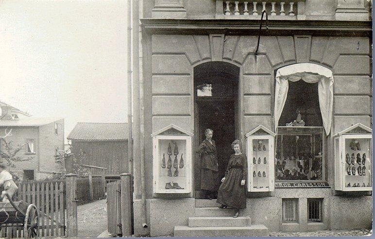 Agnes och Vivi Carlsson vid Carlssons skoaffär.