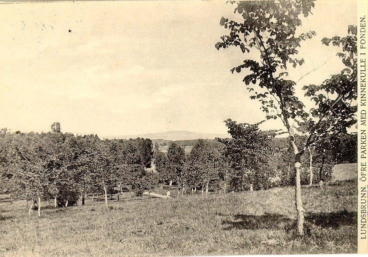 Lundsbrunn. Övre parken med Kinnekulle i fonden.