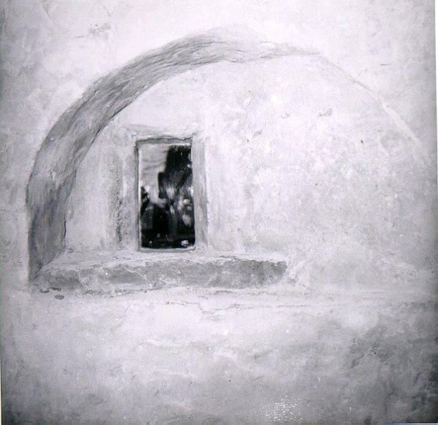 S:t Olofs kyrka. Undersökningen 1950-62. Nisch med glugg (1100-talsportal) kommunionsglugg.