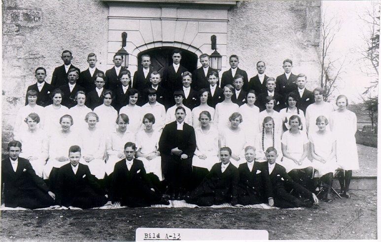 Konfirmation. Komminister Axel Ljungkvist. Lilly stående nr 3 från vänster i 3:e raden uppifrån.