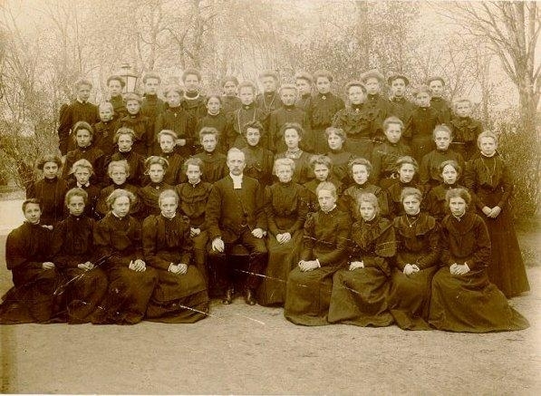 Konfirmation i Falköpings kyrka pingsten 1907. Pastor Agner.