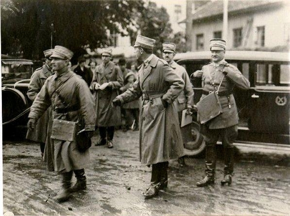 Från fälttjänstövningarna vid Falköping 1931. Kronprinsen med stab och general Bo Boustedt, generalstabschef.