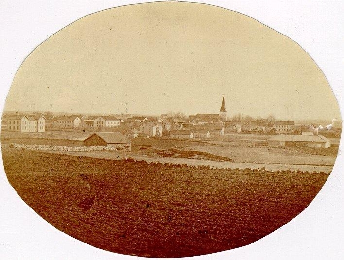 Foto från höjden i Planteringsförbundets park, nära Jungfrukällan mot kyrkan.