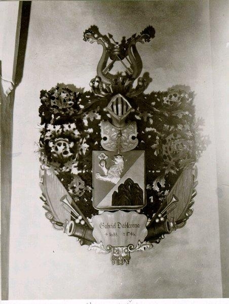 S:t Olofs kyrka. Karolinen, major Gabriel Dahlcronas vapensköld. Dahlcrona ägde omkr. 1740 en tid egendomen Viken utanför staden. Vapenskölden påträffades omkring 1920 söndrig och deformerad på kyrkans vind. Den är nu uppsatt på norra väggen. Dahlcrona skall ligga begravd "intill predikstolen".