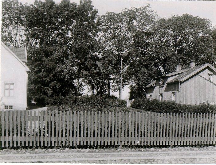 S:t Olofs kyrka och kyrkogården från Landbogatan. Bostadshusen finns inte kvar.