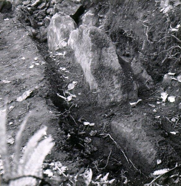 Södra bogårdsmuren på gamla kyrkogården. Foton tagna från öster och från väster.