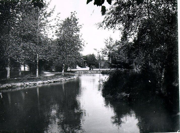 Mössebergs bad. Svandammen med springvattnet i bakgrunden.