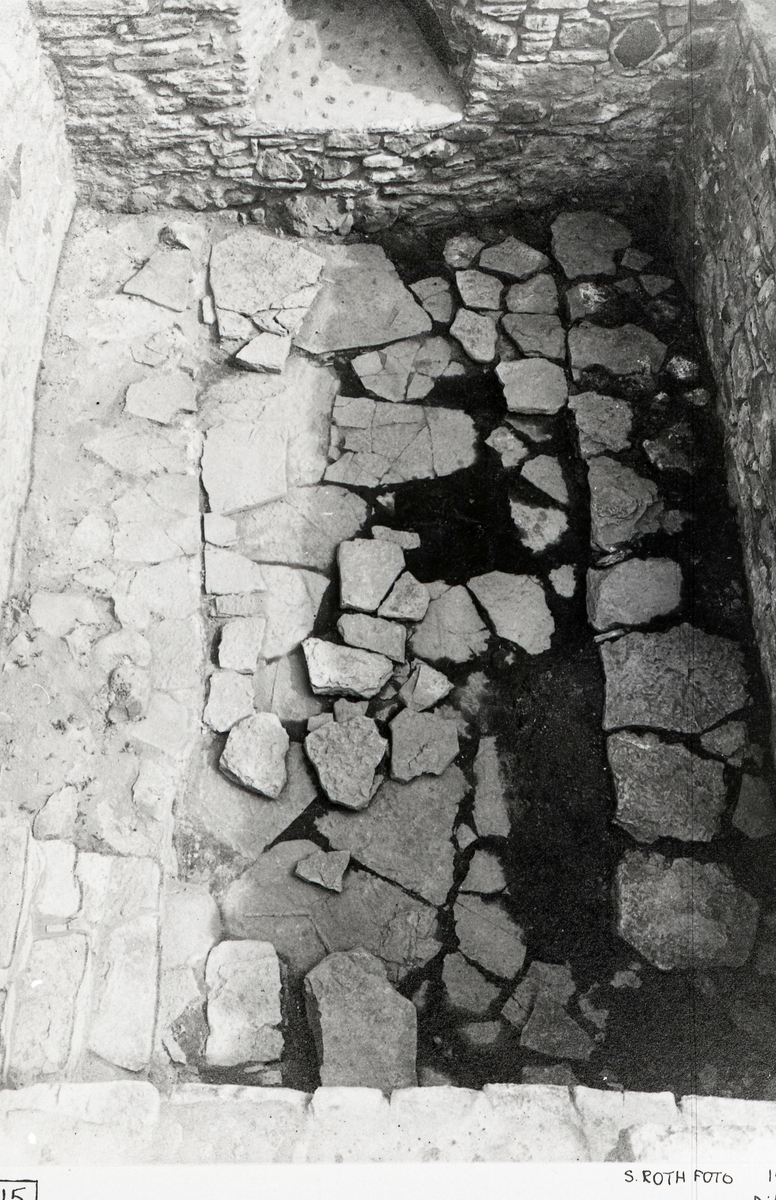Nordöstrummet. Golvet. Fönsternischen konserverad.