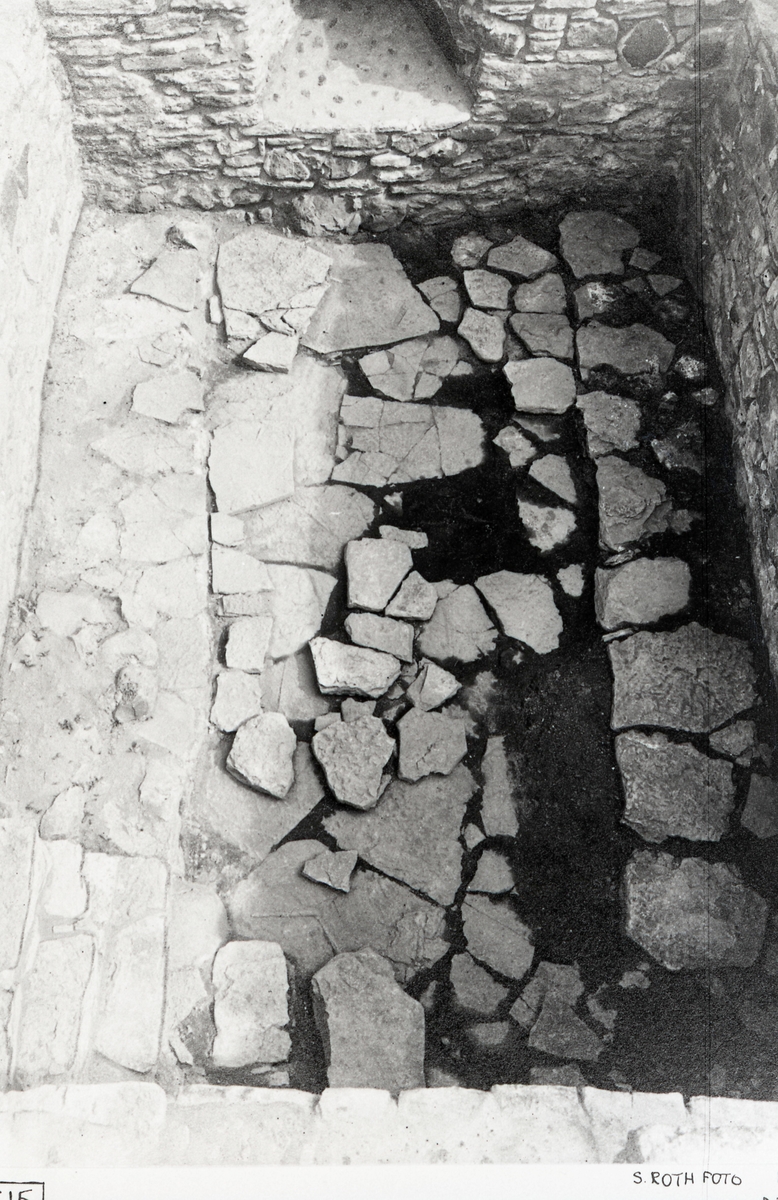 Nordöstrummet. Golvet. Fönsternischen konserverad.