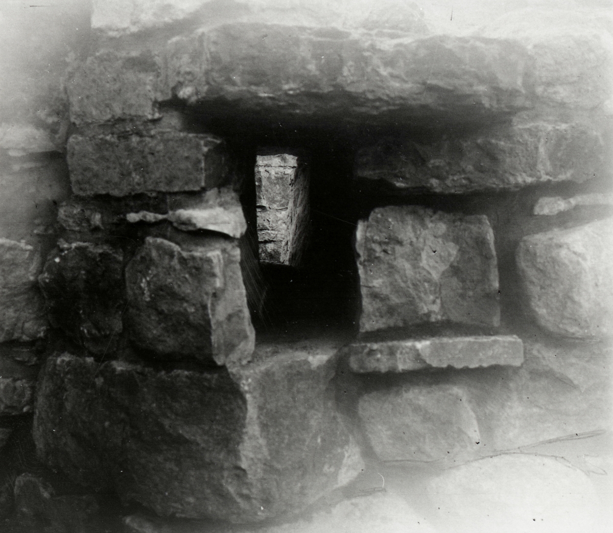 Norra längan. Sydmurens nordsida med murad kanal. Foto mot syd.