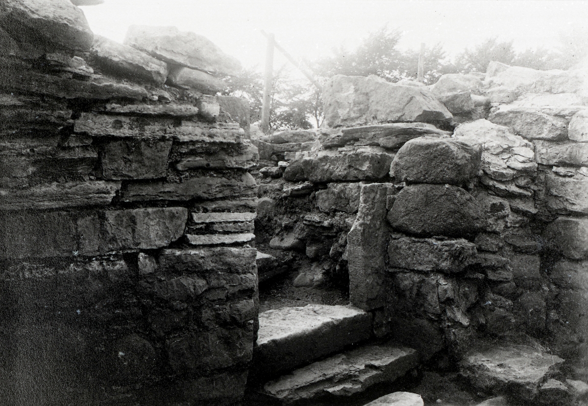 Abbedissans bostad. Källarens v. vägg med dörröppningen till trappan. Fr. n.o.