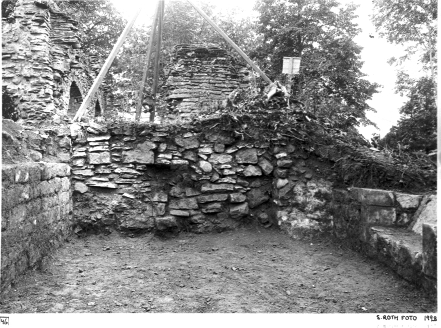 Norra koret från öster. Till vänster norra korets södra mur, tll häger norra muren med fönsternisch.