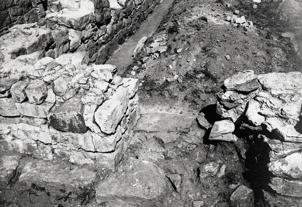 Västra korsgången. Dörröppningen till klostergården från väster snett uppifrån.