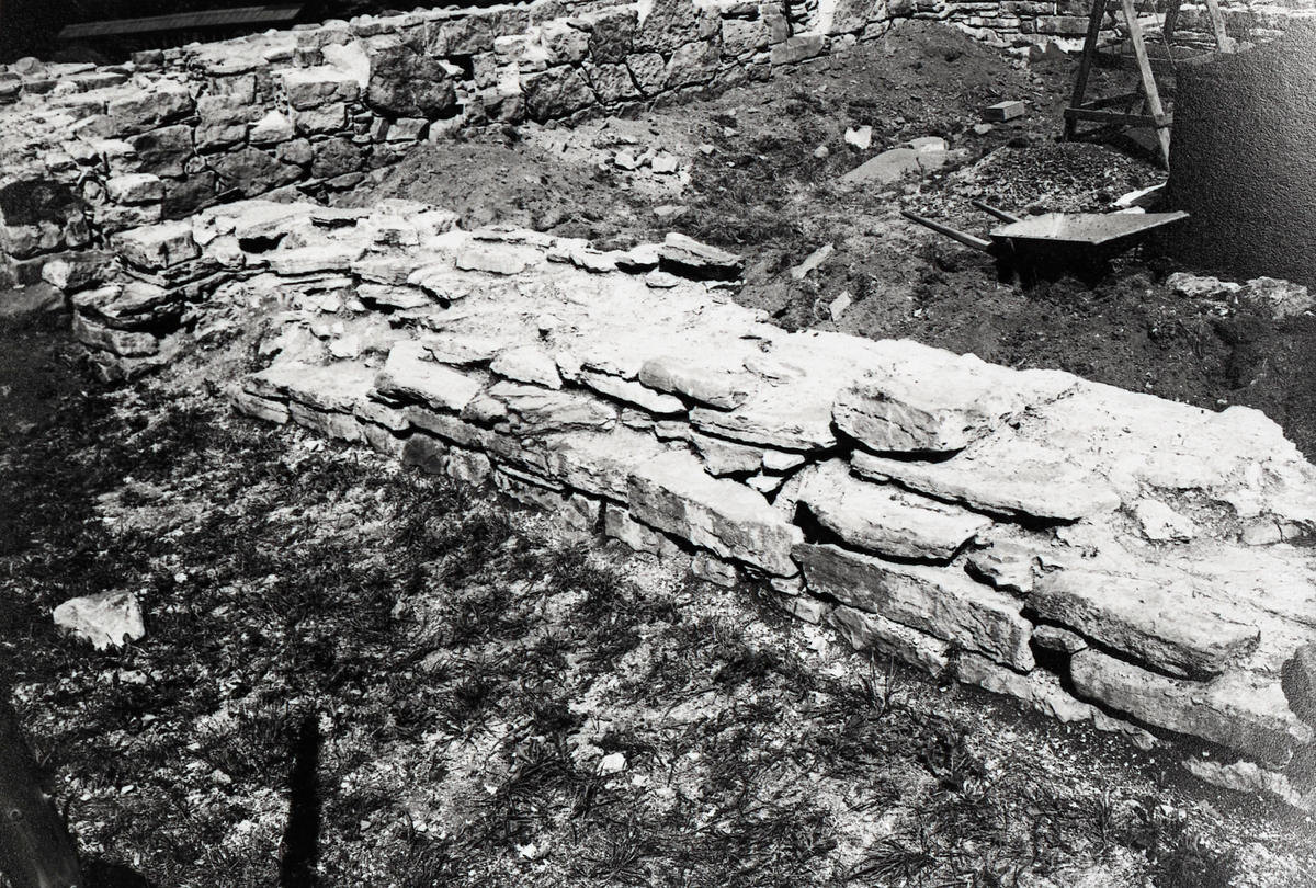 Västra korsgången. Östmuren. Murens mellanparti från sydväst snett uppifrån.