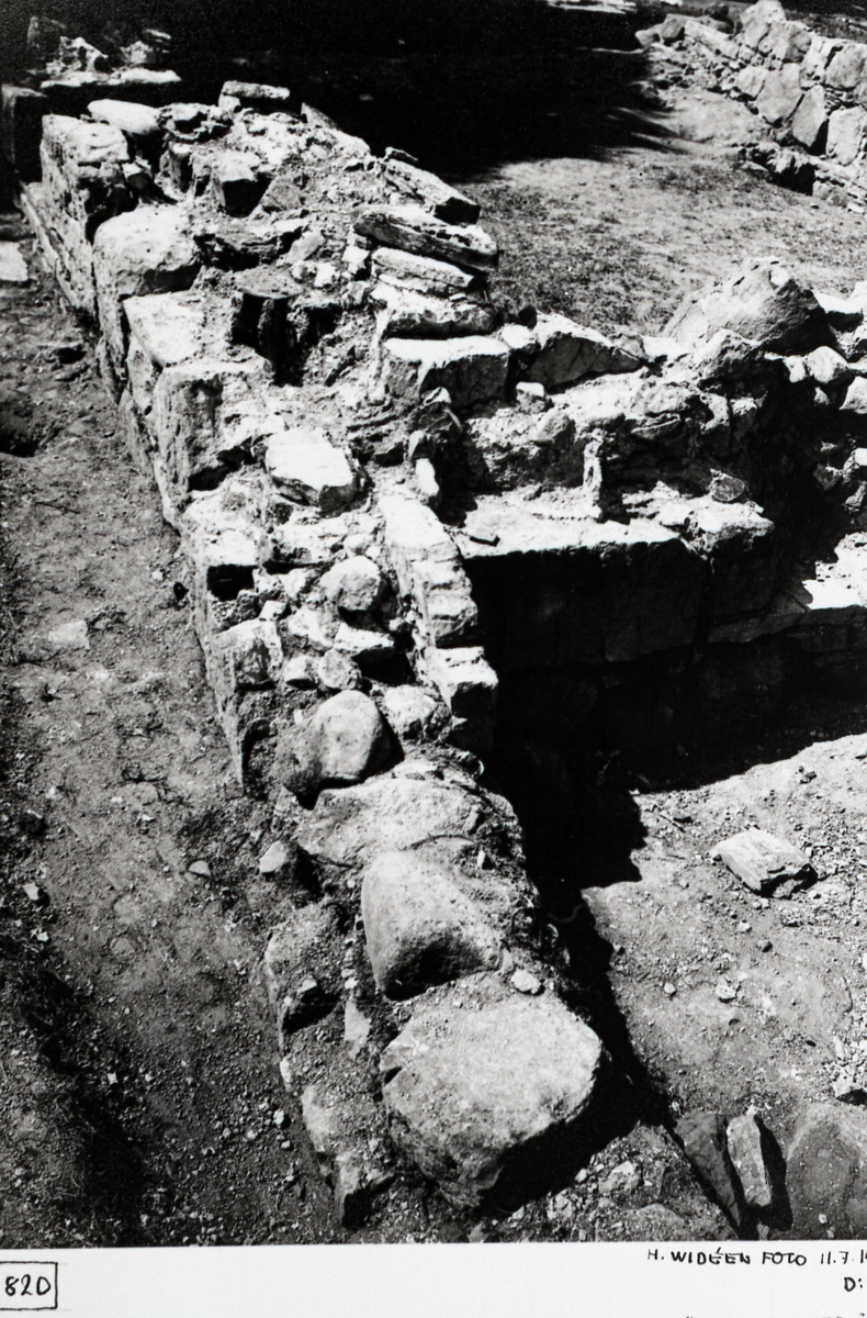 Östra huset. Sydöstra hörnet och den därtill anslutna östra mursträckningen från öster.
