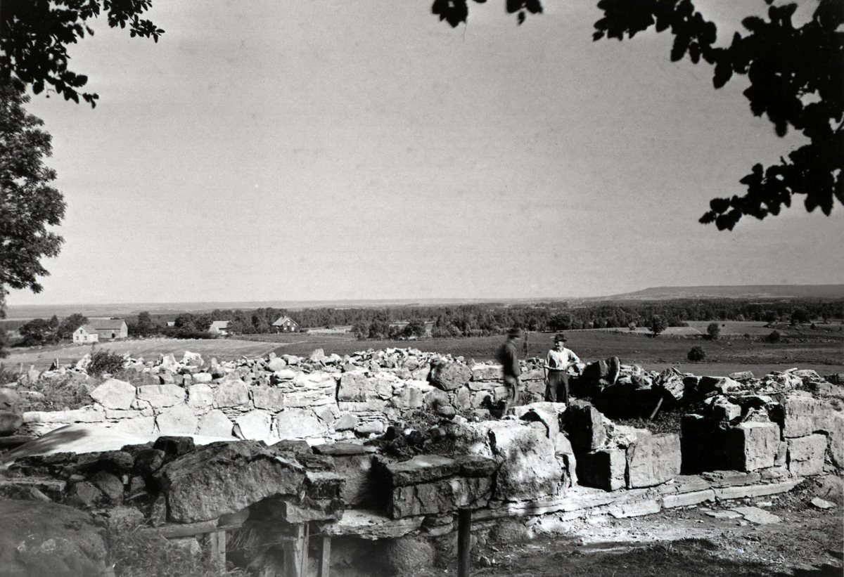 Östra huset från sydsydväst. Två män.