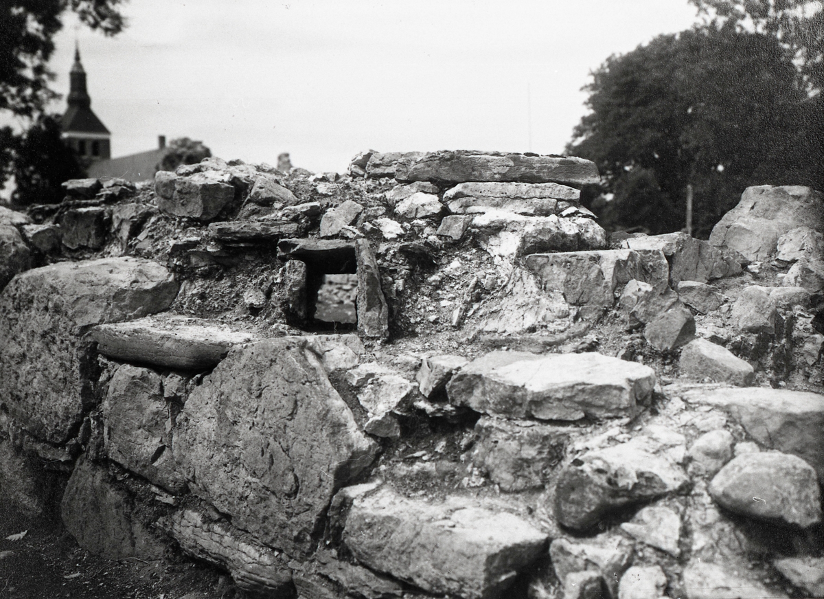 Östra huset. Murkanal I södra väggens östra del från sydost.