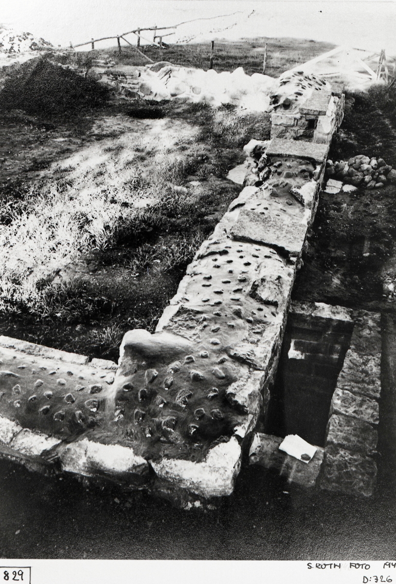 Östra huset nordvästdelen med murarna preparerade för torkning.