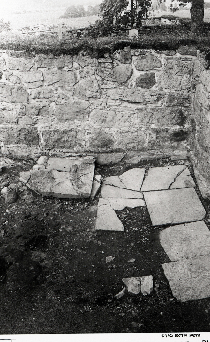 Södra kapellet. Sydöstra hörnet. Rest av altare och golvplattor från väster.