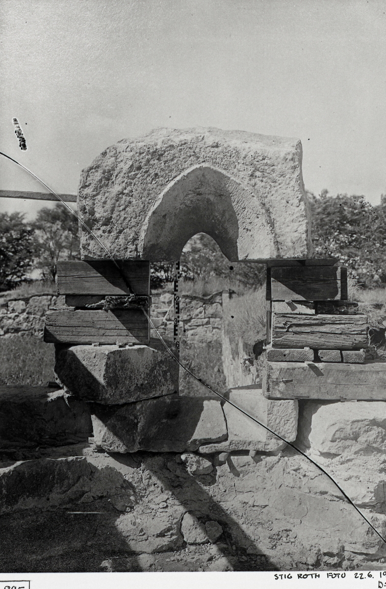 Södra korsgångens nordmur. Östra fönstret. Provuppställning från söder.