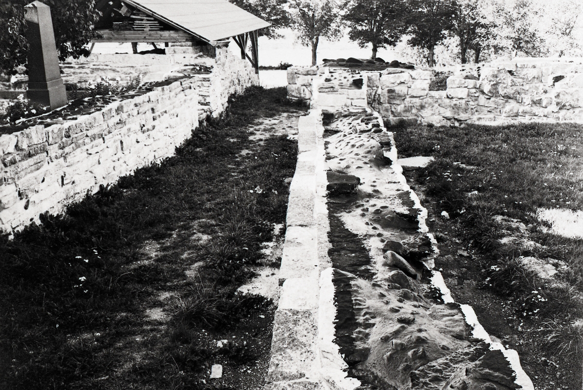 Västra korsgången från söder. Murarna preparerade för torvning.