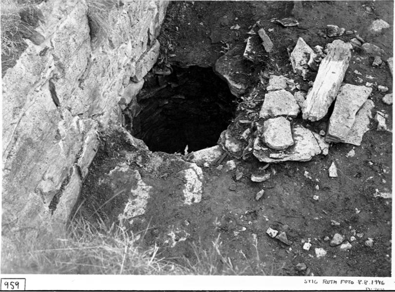 Klostergården. Brunnen i nordväst hörnet uppifrån mot ono. T.v. Korsgångens s. yttermur.