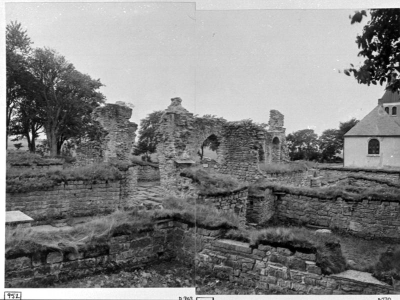 Klosterkyrkans v. del och klostrets s. del mot sv. I förgrunden t.h. kapitelsalen.