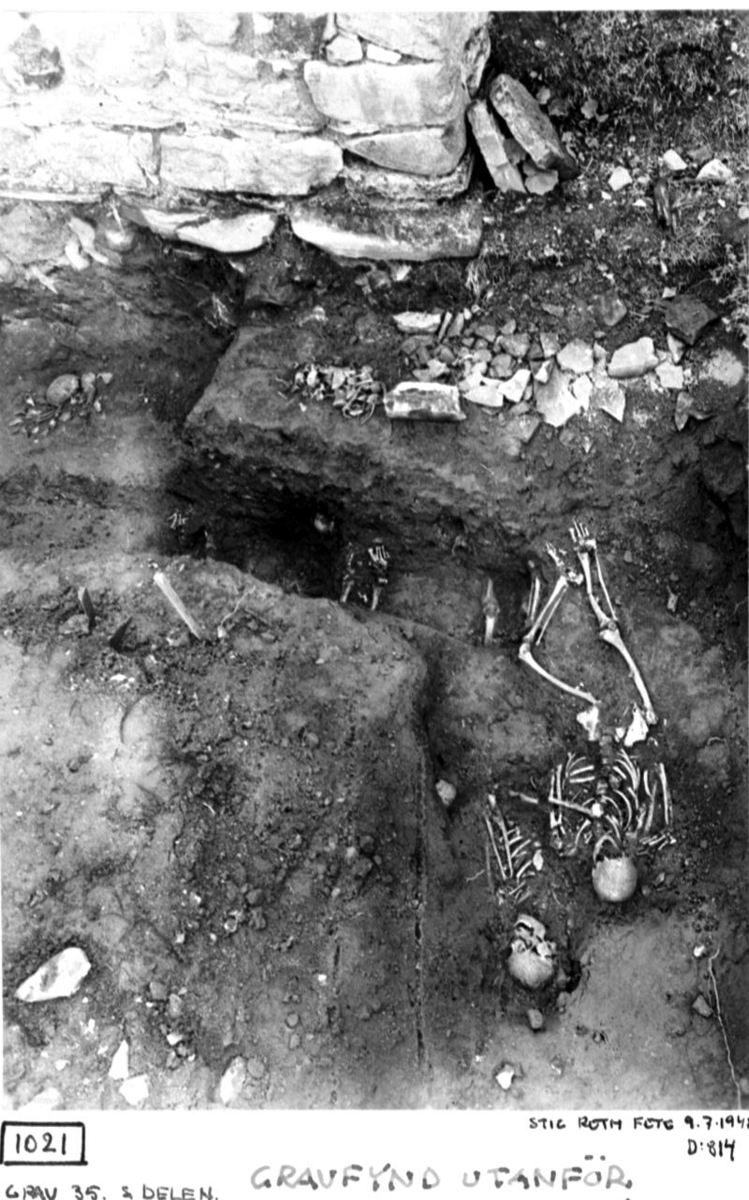 Grav 35. Gravfynd utanför korsarmens sv hörn. Foto från v.