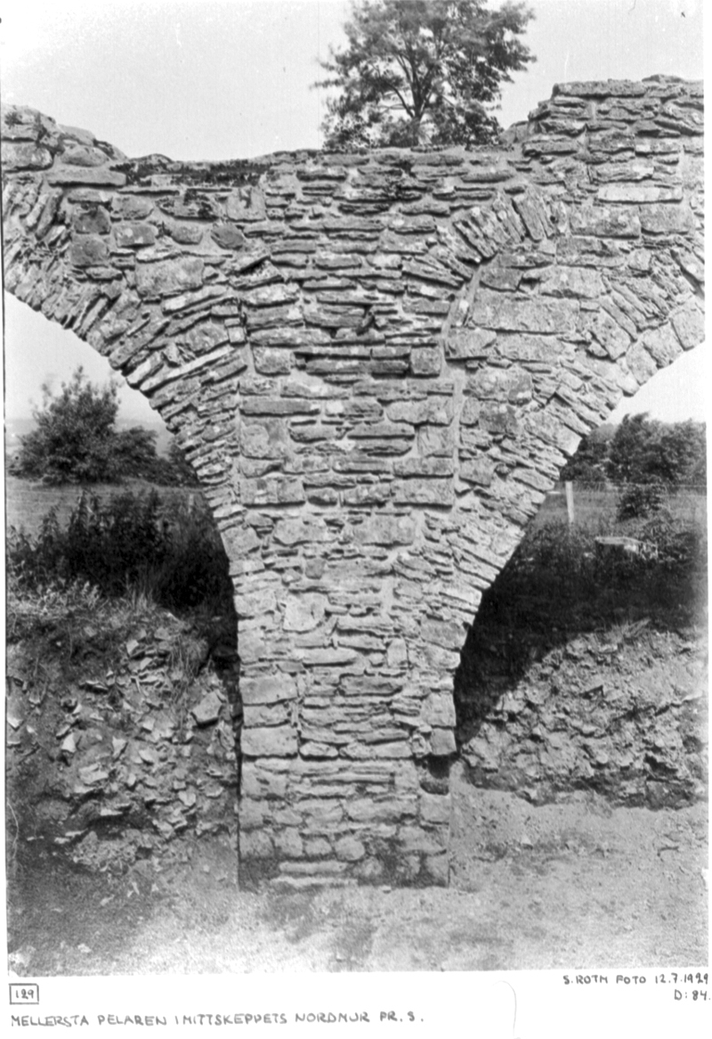 Mellersta pelaren i mittskeppets nordmur från söder.