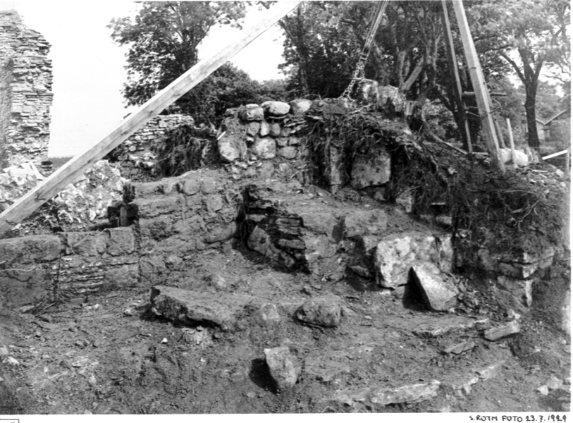 Klosterkyrkans västfasad under utgrävning från nordväst