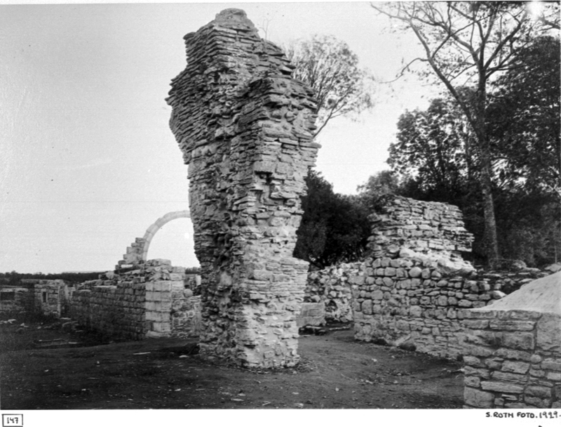 Södra mittskeppsmurens östligaste pelare från nordväst efter konserveringen.