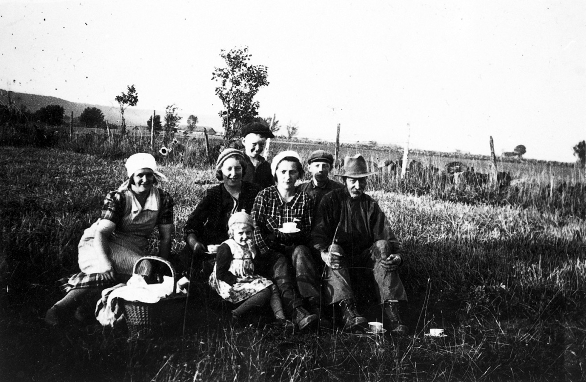 Potatisplockning. Berta och Oskar, Karl Tilin till höger.