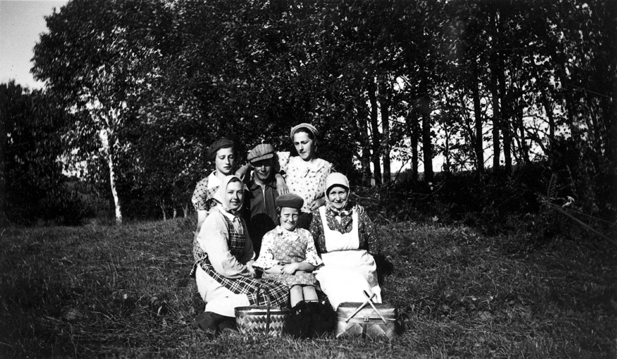 En paus i slåttern på Gerums ängar. Johan o Anna Hägg m.fl.