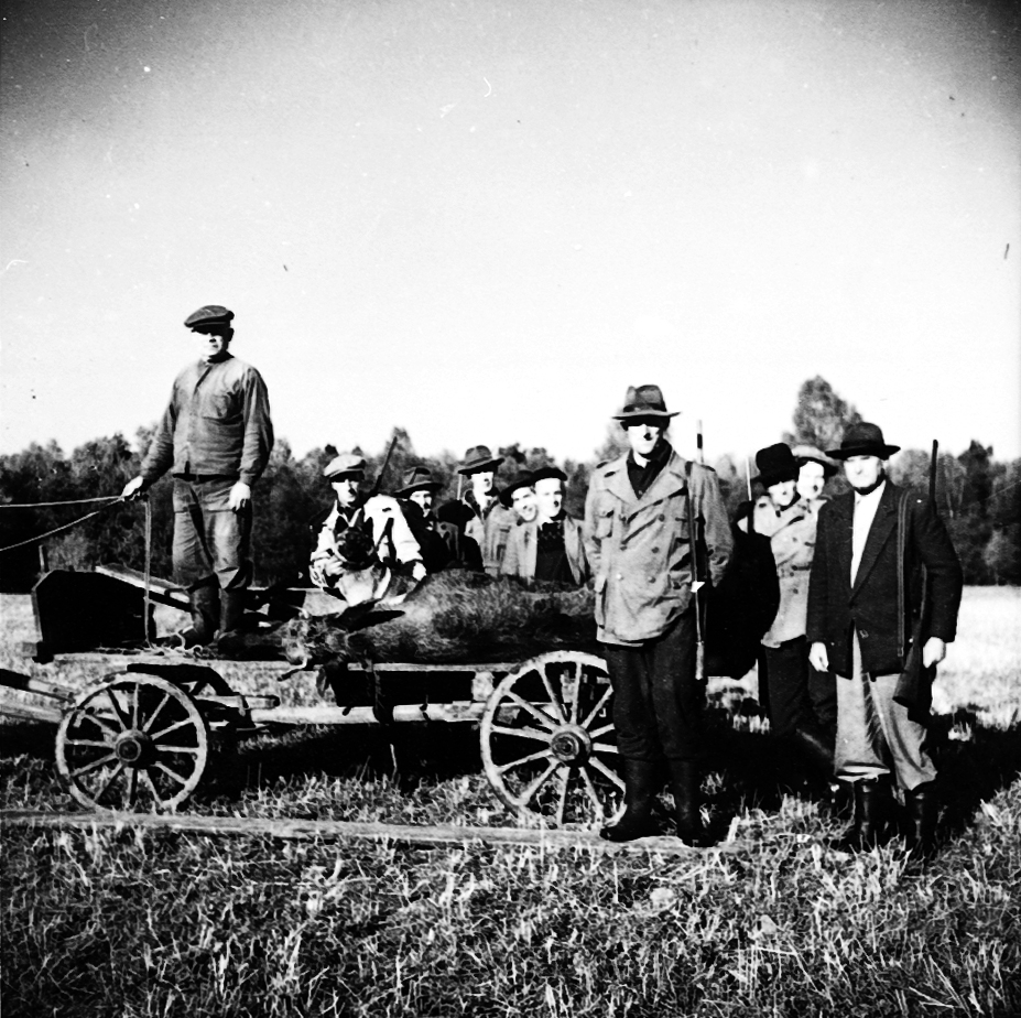Titel: Jaktlag med älg.