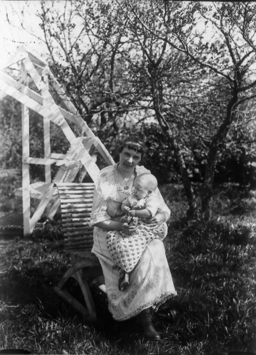 Komministerfrun Karin Larsson (född Hedin) med sin yngsta dotter Ingrid född 1919.
