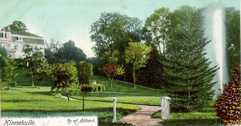 Medelplana sn. Kinnekulle. Vy av Råbäck (färglad bild).