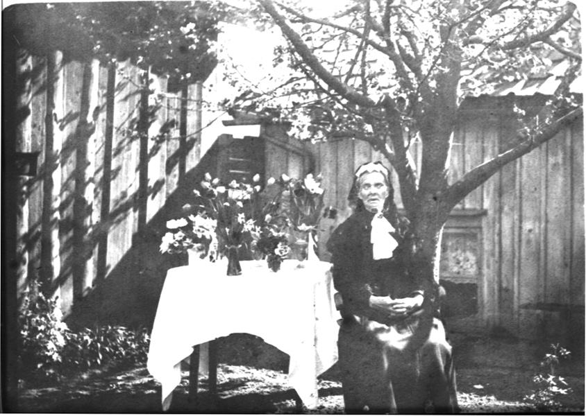 Kristina Nilsson utanför bageriet på sin 80-årsdag (eler 90).