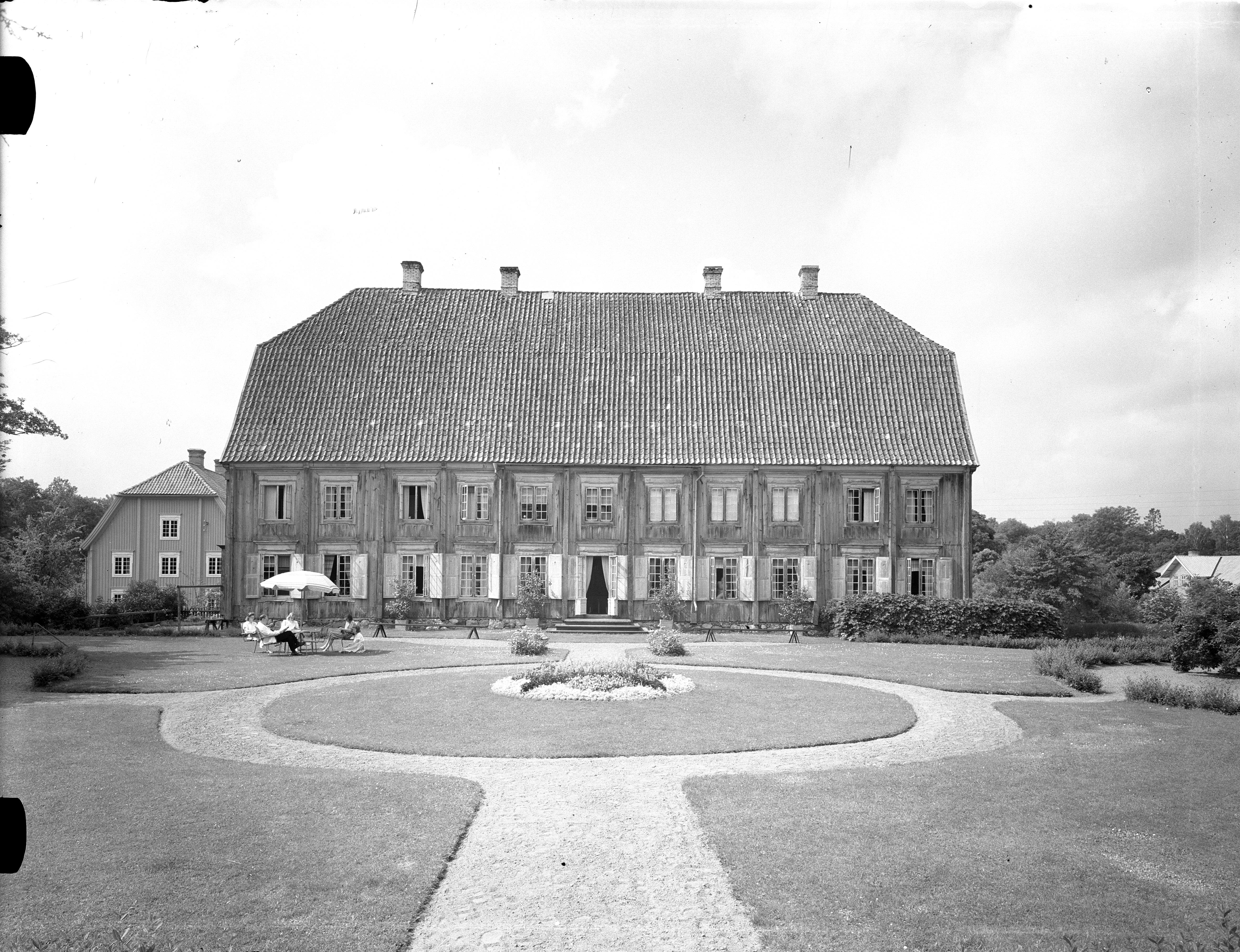 Exteriör och trädgård, entrésidan. Bilden troligen från 1940-talets första hälft.