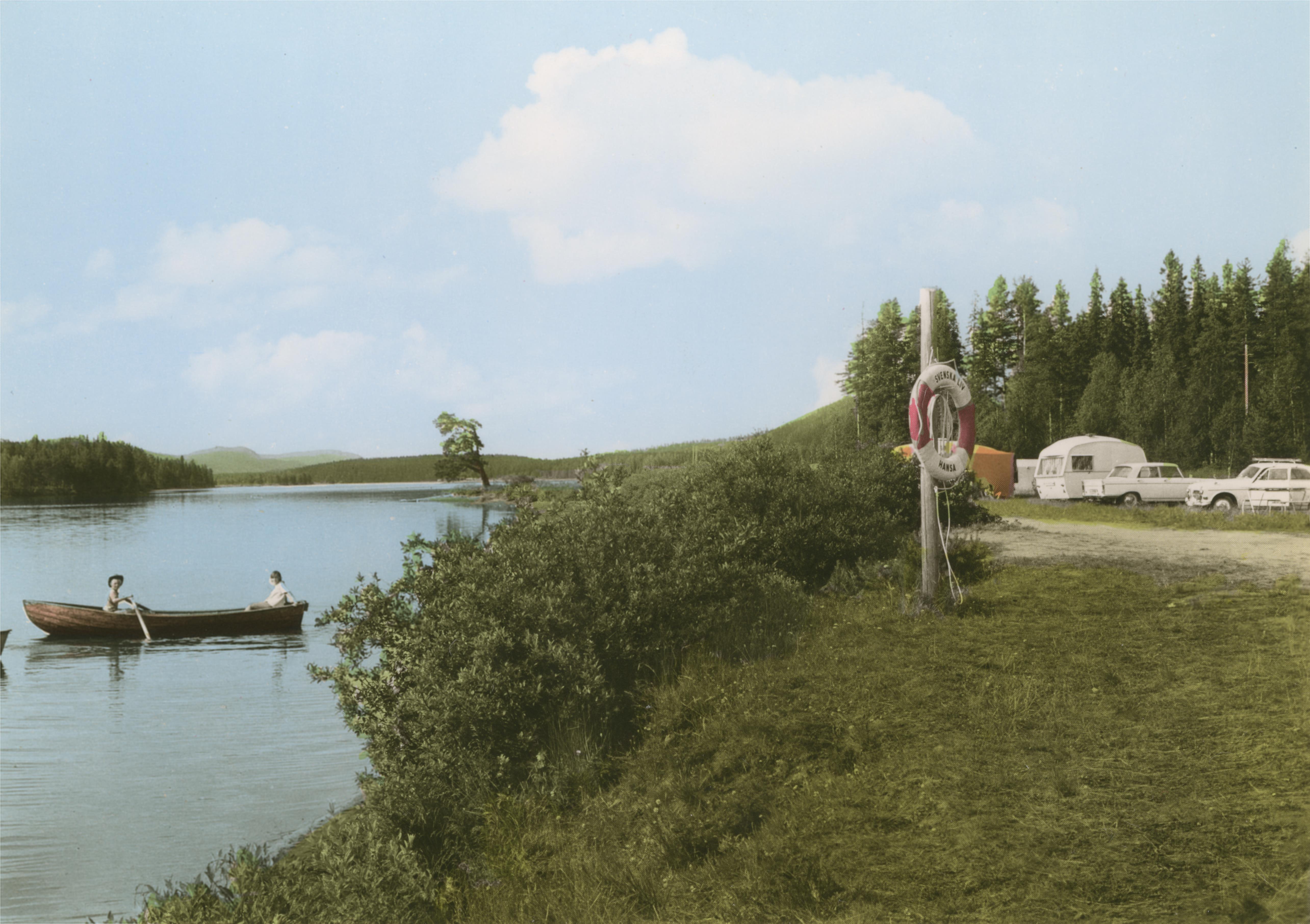 Campingplatsen vid Ångermanälven. Handkolorerad variant av ac01225.