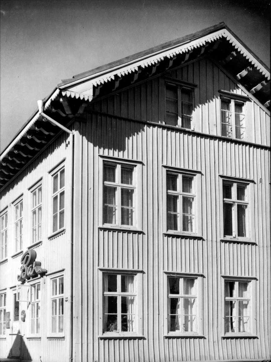 Storgatan 1, Wera-magasinshuset, från Trätorget. Från NM:s byggnadsinventering 1957.