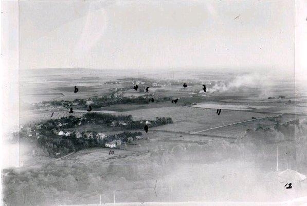 Utsikt från Mösseberg. 1. Järnvägsstationen, 2. Järnvägshotellet, 3. Baningenjörens expedition, 4. Lasarettet, Rantens kvarn, S:t Olofs kyrka, 7. Forss Hattfabrik, 8. Österbergs lada, 9. Eriksberg, Forss villa, 10. Lokförare Andresens, 11. Nuvarande Scheelegatan, 12. Bredablick, 13. Rantens gård,14. Rantens snickerifabrik.
