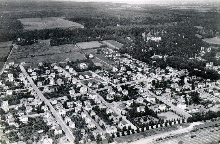 I nedre högra hörnet SJ Bangården och Rantens torg. Emellan dessa löper Nils Ericsonsgatan och ovan denna Danska vägen. Längst till vänster syns Scheelegatan ännu ganska smal. Sedan följer Berzeliigatan, Linnégatan, Allégatan, Döbelnsgatan, Villagatan, Lidgatan och Mössebergsgatan. Sanatoriet och Utsiktstornet syns väl däremot inte Bredablick, varför fotot bör vara taget före 1963.