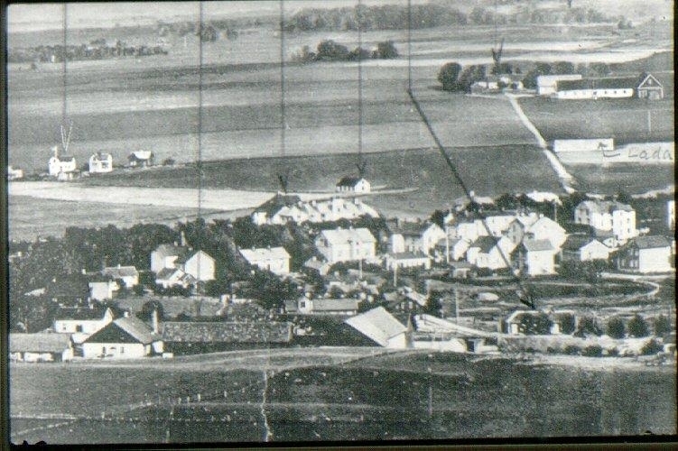 Utsikt över Falköping. Streck 1 från vänster pekar mot Grönelund, två hus kvar 1969. Streck 2 mot Lundahls, Rantens gård. Streck nr 3 mot utställningen 1910. Streck 4 mot logen Verdandi. Streck nr 5 mot Spruthuset. Streck nr 6 mot Fredriksberg, "Österbergs". Streck nr 7 mot gården Viken.