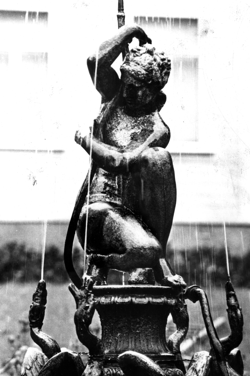 Titel: Fontänen framför överläkarvillan i Mössebergsparken.