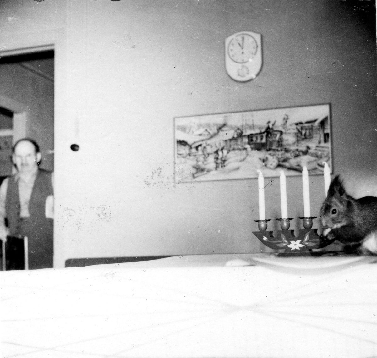 Oskar och en ekorre.