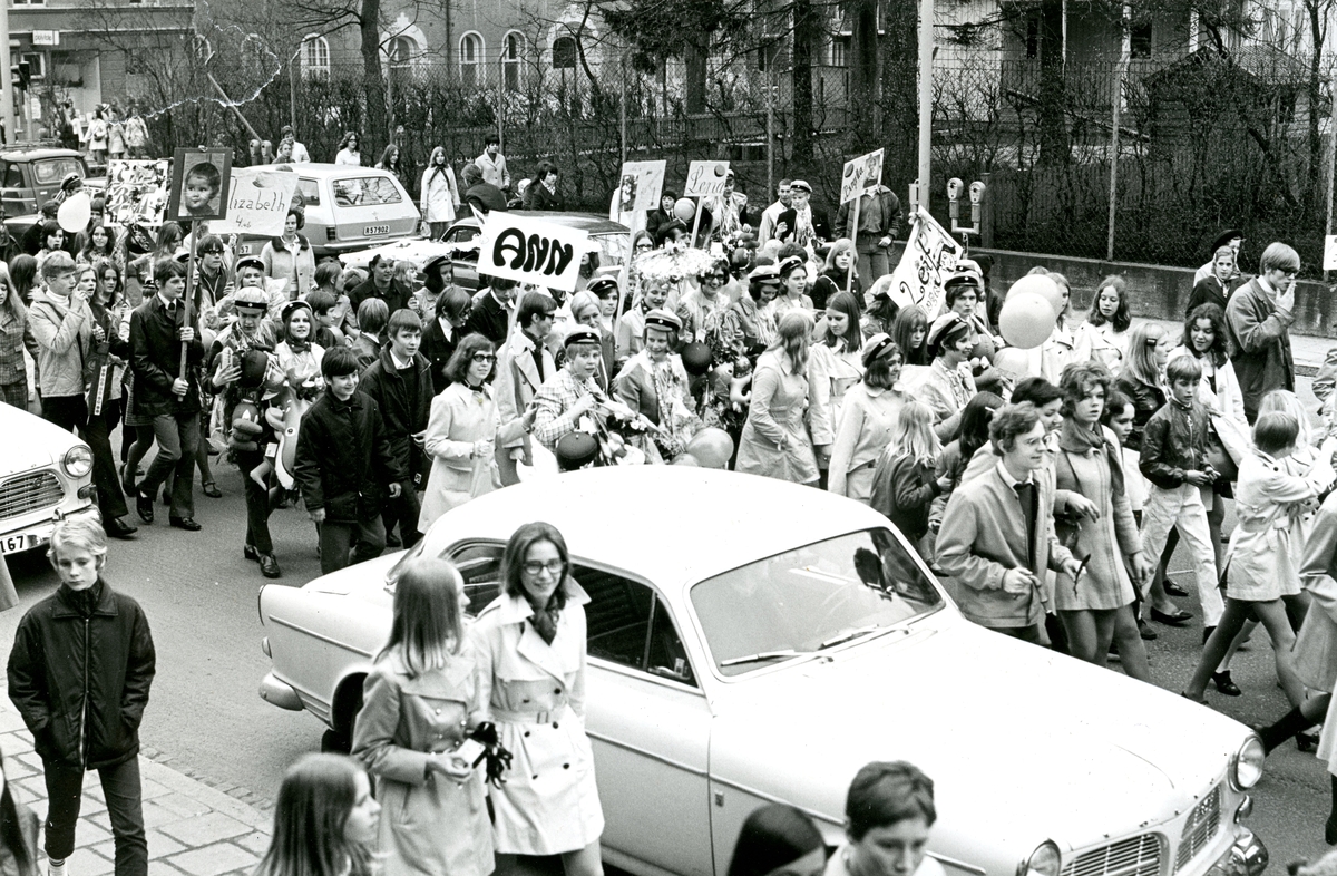 Realexamen, Kyrkerör, 1969 (sista realarna). Tågar på Trädgårdsgatan.